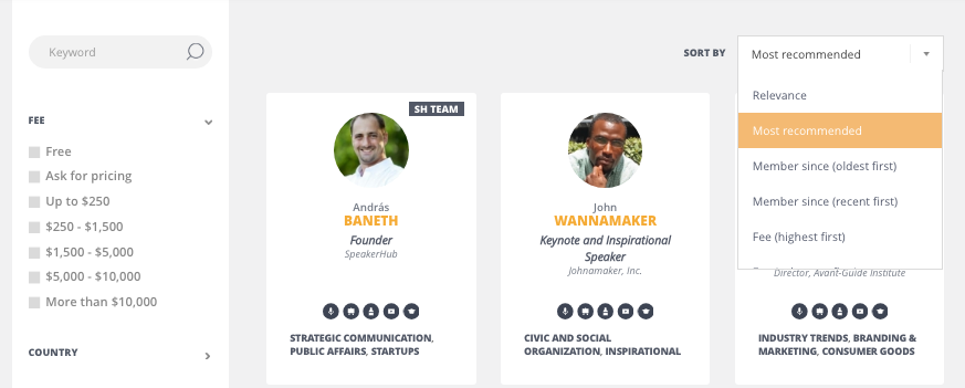 When you are starting your search for speakers, you can now prioritize seeing the speakers with the most recommendations first.