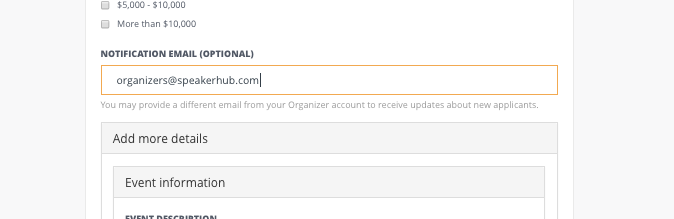 You can now edit and add your preferred email address for each event you add in the event editor.