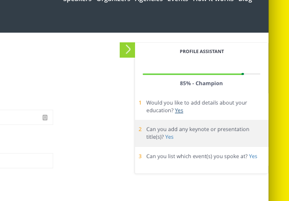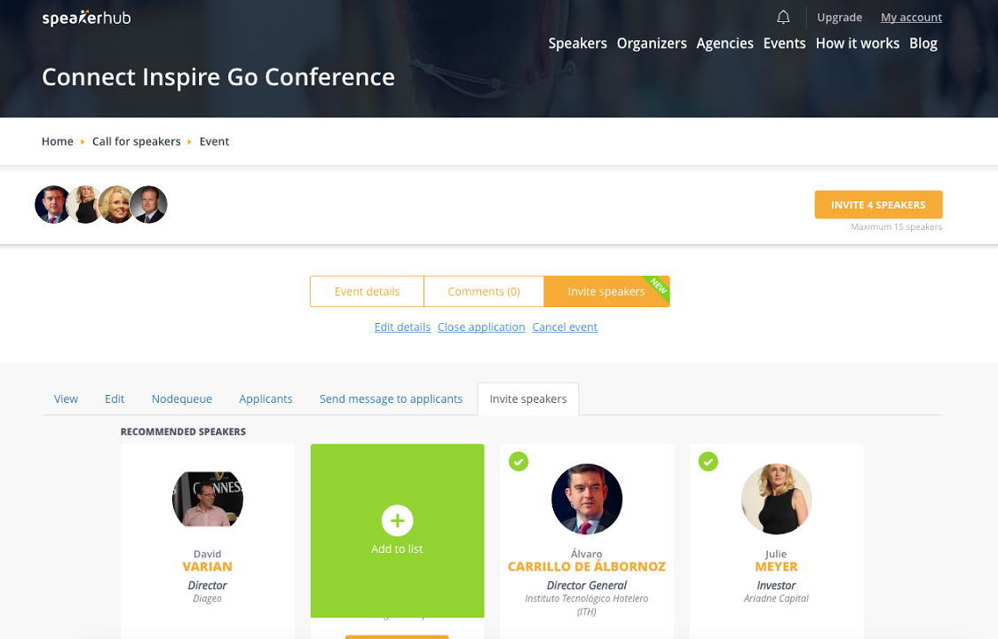 Once you’ve created your event, click the “Invite Speakers” button, and you will get a list of the most relevant speaker profiles.